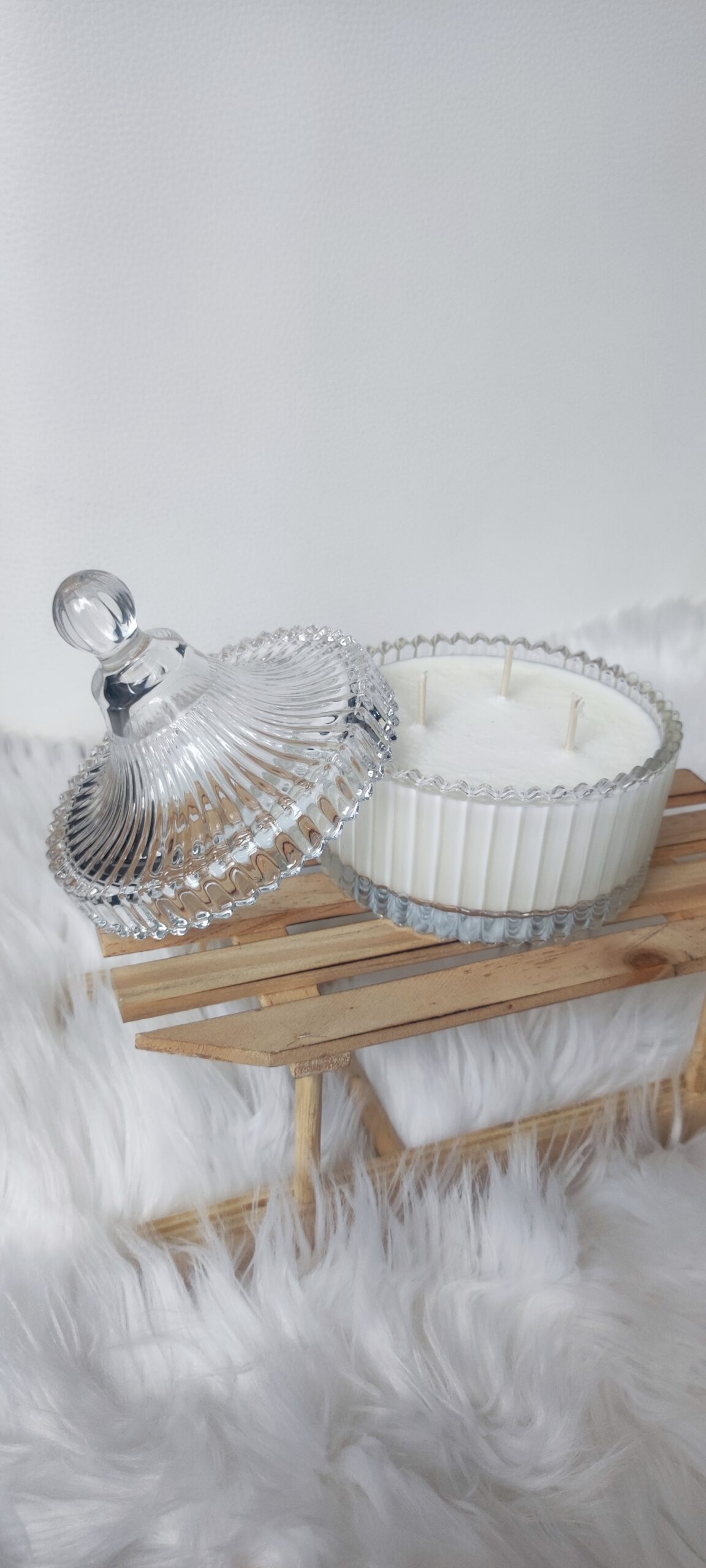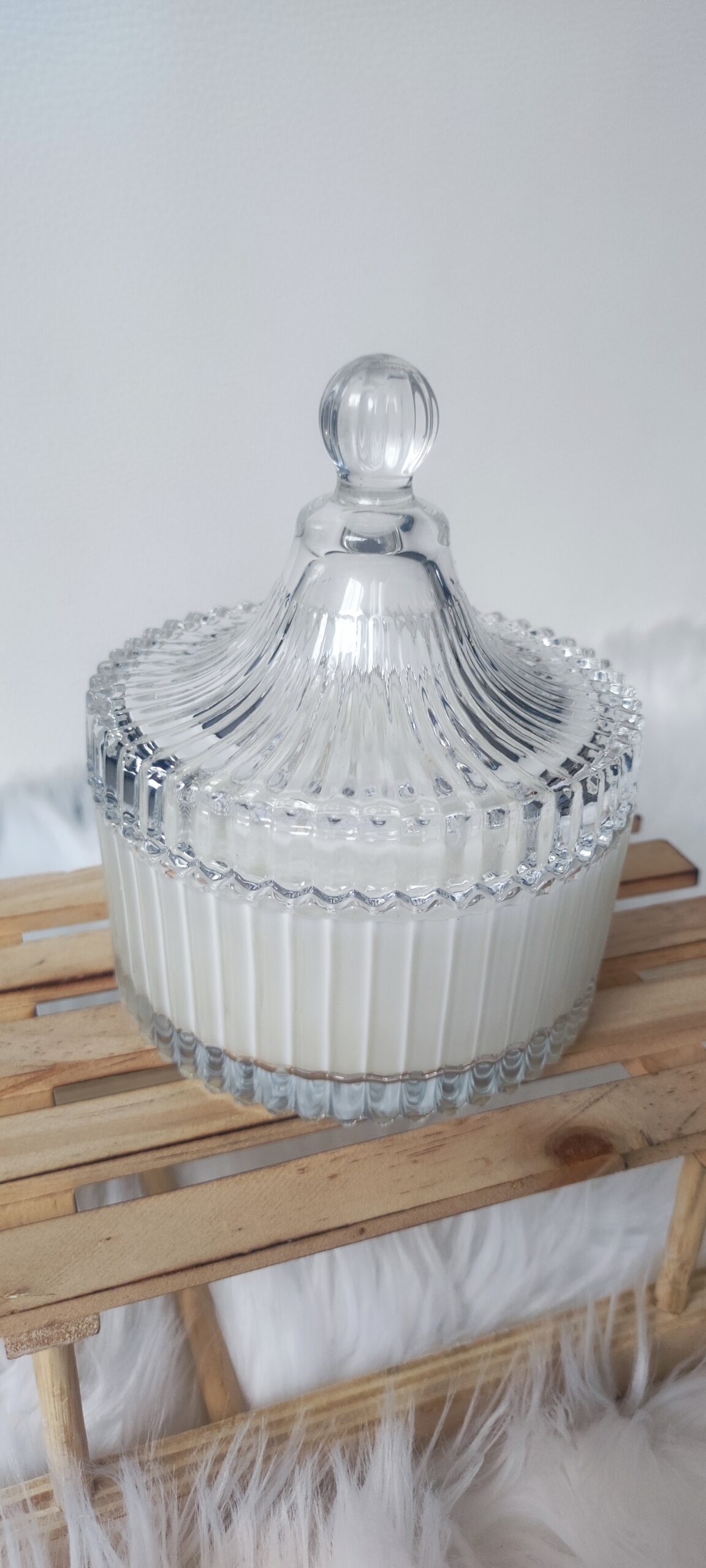 Świecznik szklany, przezroczysty ze szklaną pokrywką do ponownego użycia.